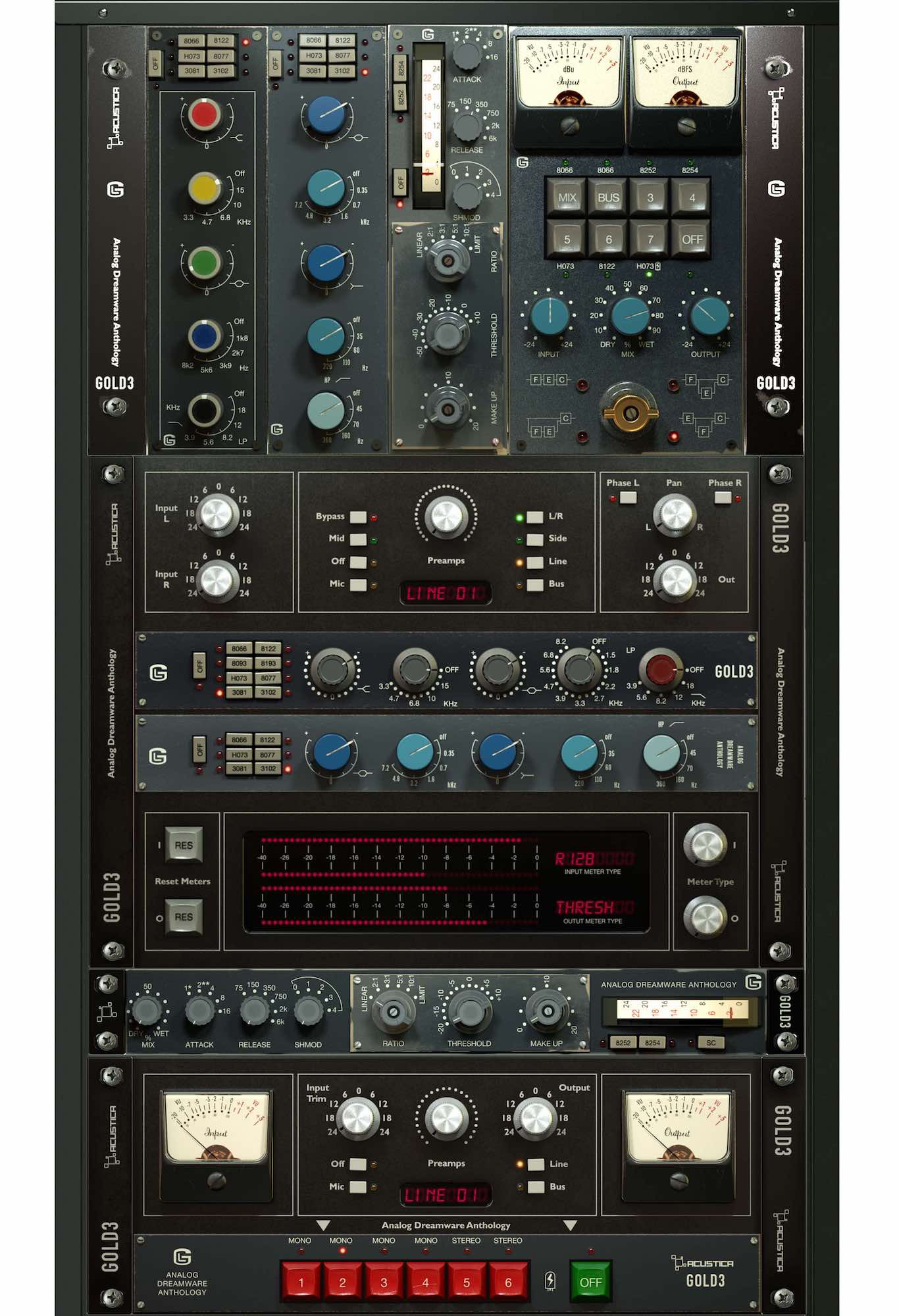 Gold3 è l'ultima novità presentata nelle scorse ore da Acustica Audio, si tratta di una leggendaria console di matrice inglese che si trova nei Tambourine Studios di Malmo, in Svezia, qui hanno registrato tra gli altri a-ha, Tom Jones, Anouk, Melanie C e The Cardigans con il produttore svedese Tore Johansson. L'utente ha a disposizione con questa v3 quattro moduli, ognuno che conta di diversi modelli emulati, riassumendo: