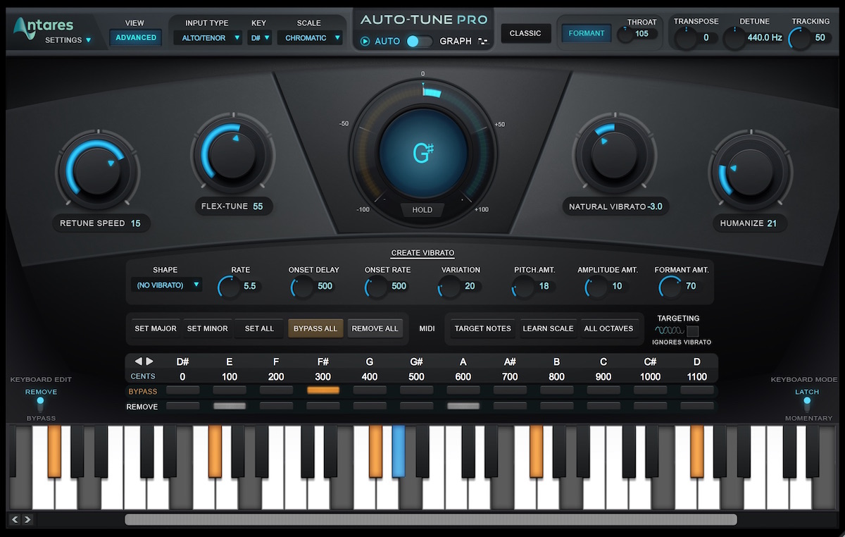 La modalità Automatic permette di scegliere tra Basic e Advanced view, la prima con solo i comandi basilari, la seconda per il tuning più preciso; il tool incluso di detenzione automatica della tonalità effettua processing inviando direttamente a una o più istanze di Auto-Tune Pro le informazioni che rileva.