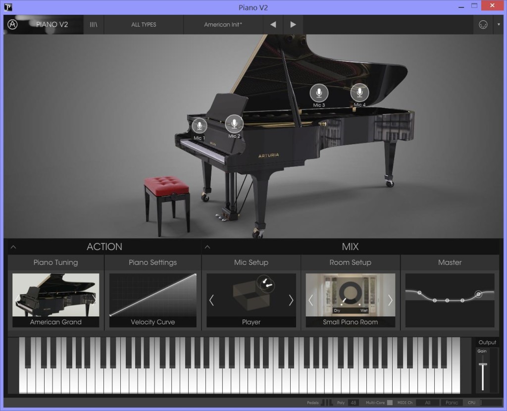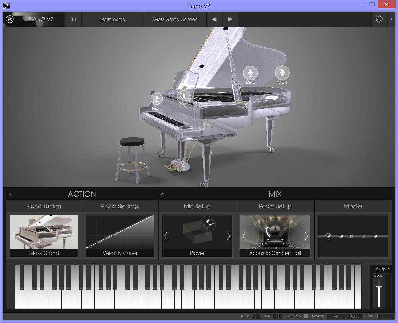 Le principali novità riguardano l’inserimento di tre nuovi modelli di pianoforte, che portano a 12 le varianti disponibili, l’emulazione della ripresa microfonica che comprende parametri per il posizionamento, il livello e il pan di quattro microfoni, impiegabili ora anche a coppie stereo e con impostazioni dedicate su ciascun canale anche per quanto concerne il delay. Tra i modelli disponibili, troviamo tre varianti di pianoforte a coda di provenienza americana, giapponese e tedesca, una variante denominata Pop, più tre modelli futuristici che adottano anche tavole armoniche in metallo o vetro, infine cinque modelli di pianoforte verticale. La sezione effetti è stata irrobustita con l’inserimento di blocchi dedicati a un compressore, un delay stereo e un equalizzatore a cinque bande con frequenze Low/High di tipo Shelving e tre bande parametriche, oltre al riverbero a convoluzione.