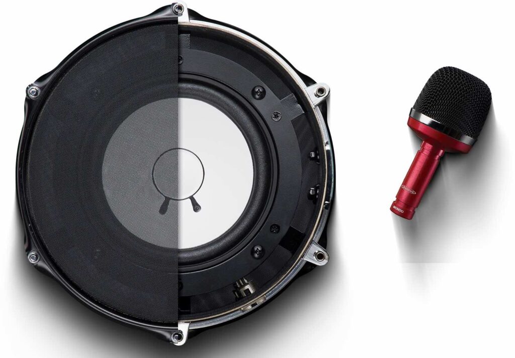 Mondo invece è realizzato in zinco pressofuso senza parti di plastica, il corpo è in ottone mentre la griglia in acciaio. Come gli altri microfoni Avantone per batteria, monta inserti lavorati sul corpo che consentono agli o-ring del supporto di bloccare il microfono ed evitare spostamenti e slittamenti. Il supporto SSM antiurto è molto robusto e adatto a qualsiasi utilizzo. Anche Mondo è un dinamico con figura polare cardioide, offre risposta in frequenza da 20 Hz a 15 kHz e SPL massimo a cui resiste è pari a 145 dB.