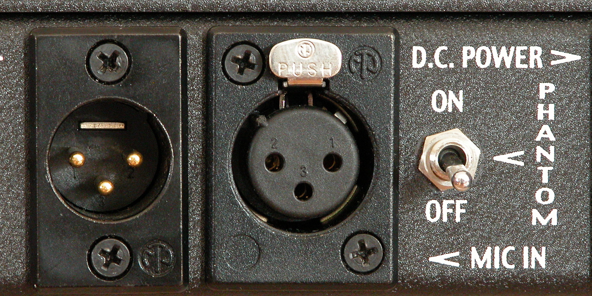 GML 8302, ingresso per microfono e uscita amplificata, con il solo switch per l'alimentazione Phantom