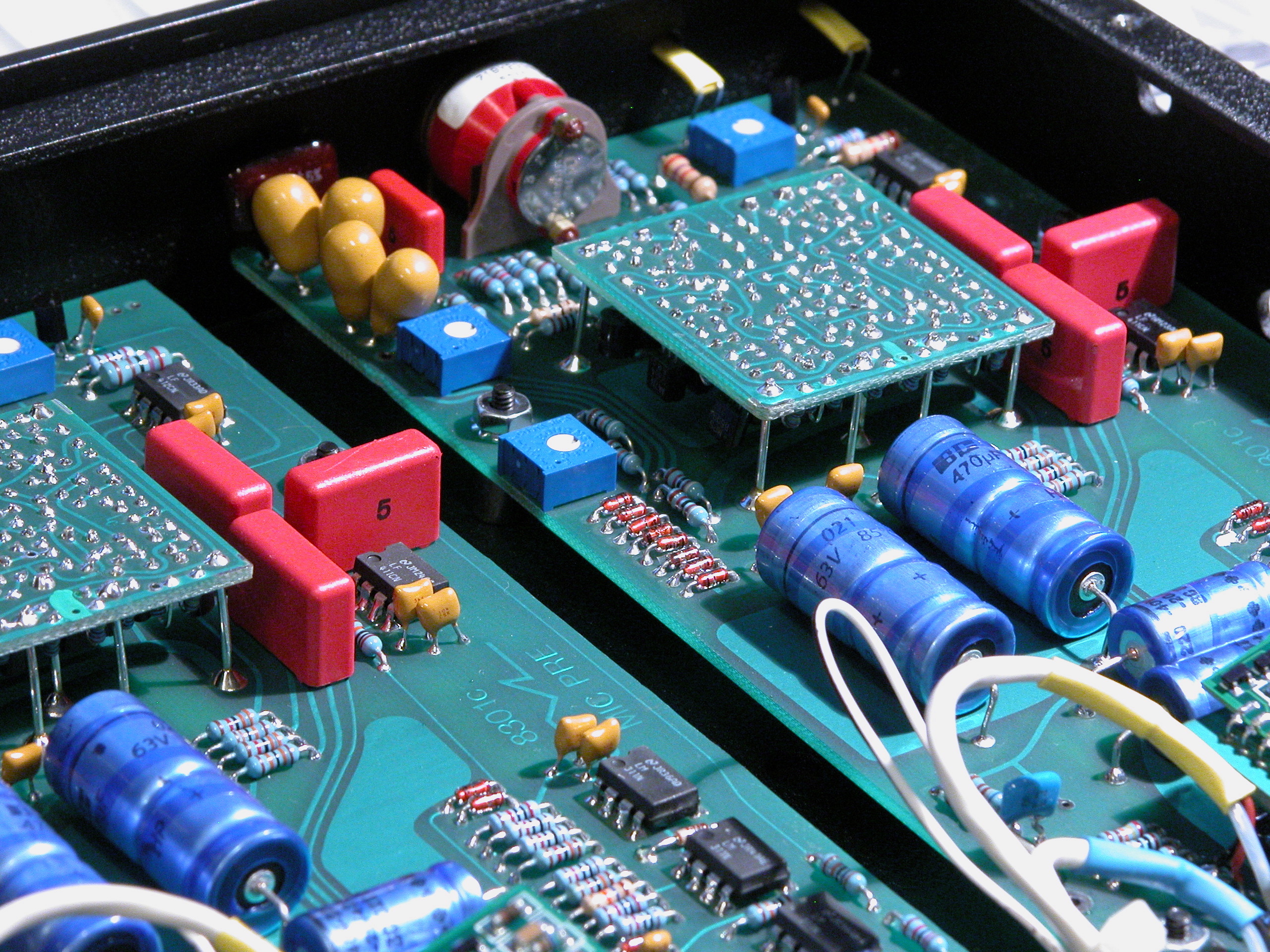 I dettagli tecnici ed elettronici di questo pre sono pochi: non ci sono trasformatori, non ci sono circuiti FET, integrati o condensatori elettrolitici inseriti lungo il percorso del segnale. Il circuito è totalmente ad elementi discreti con transistor bipolari, in grado di gestire un guadagno da +15 dB a +70 dB. Un led rosso segnala, quando acceso, che il pre ha raggiunto un sovraccarico intorno ai 24 dBv. Il led verde segnala semplicemente che il pre riceve correttamente l’alimentazione.