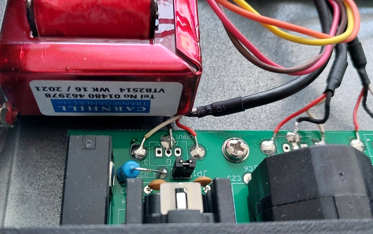 Le connessioni posteriori prevedono l’uscita XLR e su jack ¼’, ingresso Line su XLR Combo e ingresso separato per Mic, sempre su XLR Combo, che risolve il problema dell’alimentazione Phantom che sul Pre73 era presenta anche sull’ingresso Line. Si possono tenere connessi sia l’ingresso Mic che Line. La piccola PCB che accoglie le connessioni ha un jumper per portare l’impedenza in uscita a 600 Ohm, che riduce leggermente il livello d’uscita. A questo proposito, l’attenuatore Output si trova prima dello stage di uscita, che prevede come ultimo transistor, in Classe A, il 2N3055 che anticipa il trasformatore d’uscita.