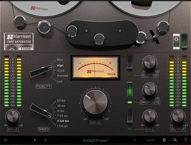Harrison Tape Saturator riproduce il carattere sonoro unico dei famigerati registratori a nastro a 2 tracce da ¼” degli anni '70 in un'unica e potente emulazione software.