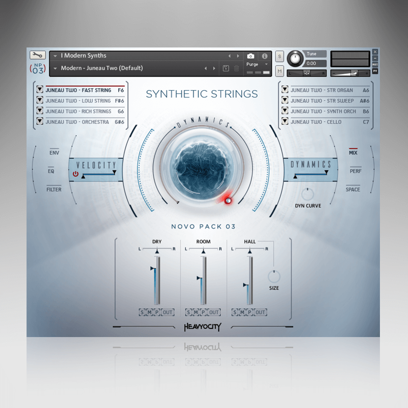 Heavyocity presenta la terza aggiunta alla serie di librerie NOVO, la raccolta di suoni vintage e moderni: Synthetic Strings! Un totale di oltre 13 GB di materiale audio che comprende: 4513 sample, 227 preset, sei strumenti NKI, 120 loop ritmici e 81 sound sources (derivati da 10 synth: Juneau 2, Boomsynth, Analog Brute, Sub 307, StringFett, Nova, Performer One, HY-101, HY-202, String Ensemble).