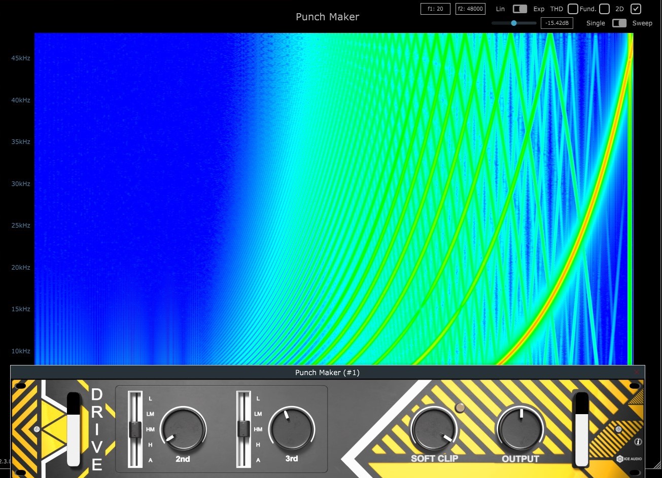 It all seems very simple, and it is during mixing, but Punch Maker hides a few secrets. Let's start with harmonic distortion: here you will not only find the first series of even or odd harmonics, but all of them up to the end with gradually decreasing amplitudes. From a certain point of view, Punch Maker moves away from preamp emulation, but it is also true that by adding a little harmonic distortion, the levels of the subsequent harmonics are so low that they do not appear in the audio signal.