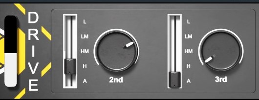 We moved on to the bass: second harmonic at 9 o'clock and High Mid band to keep the attack within the mix, third harmonic on Low with level at 8 o'clock: the bass became full-bodied and clear!
