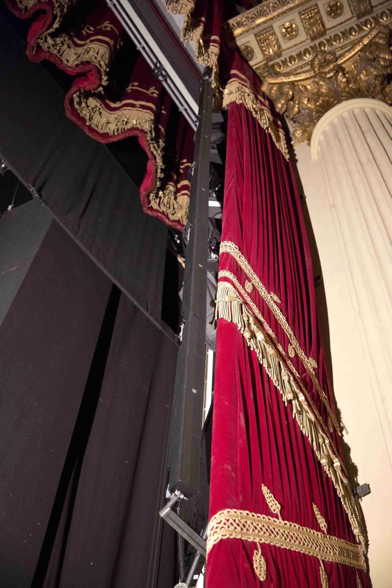 Al di fuori dei palchi sono invece posizionati quattordici diffusori line array Kobra-KK52 ancorati tramite staffe removibili progettate dallo staff tecnico del teatro a cui sono collegati cinque subwoofer Thunder-KMT12 da 12".