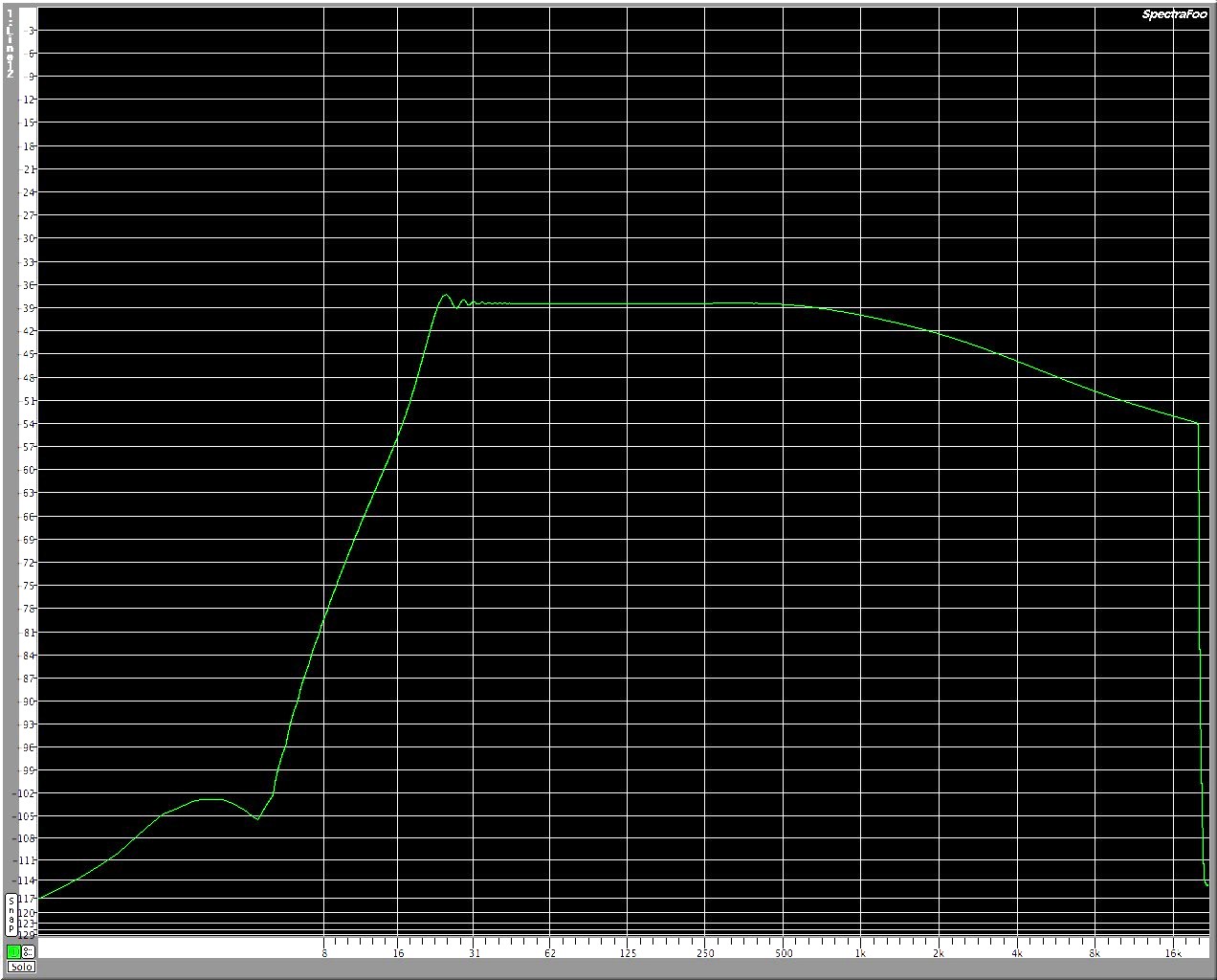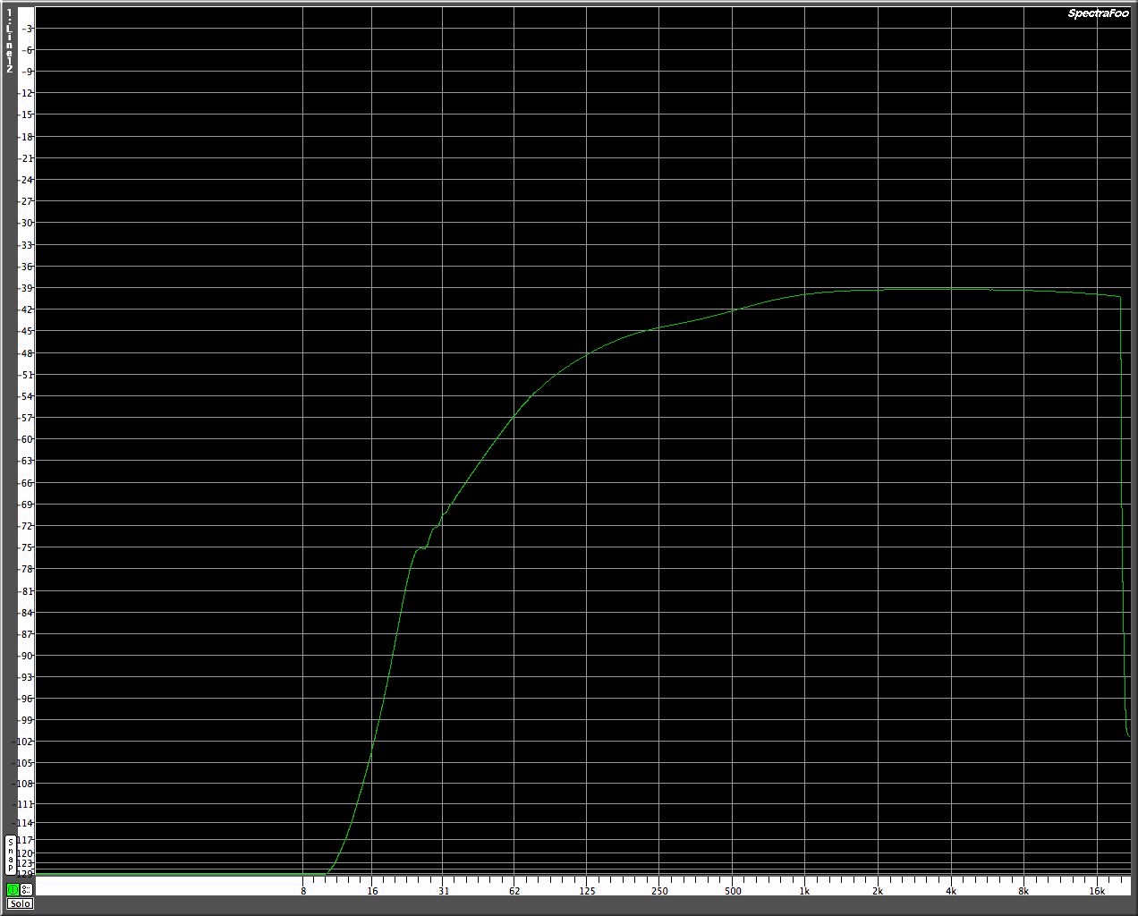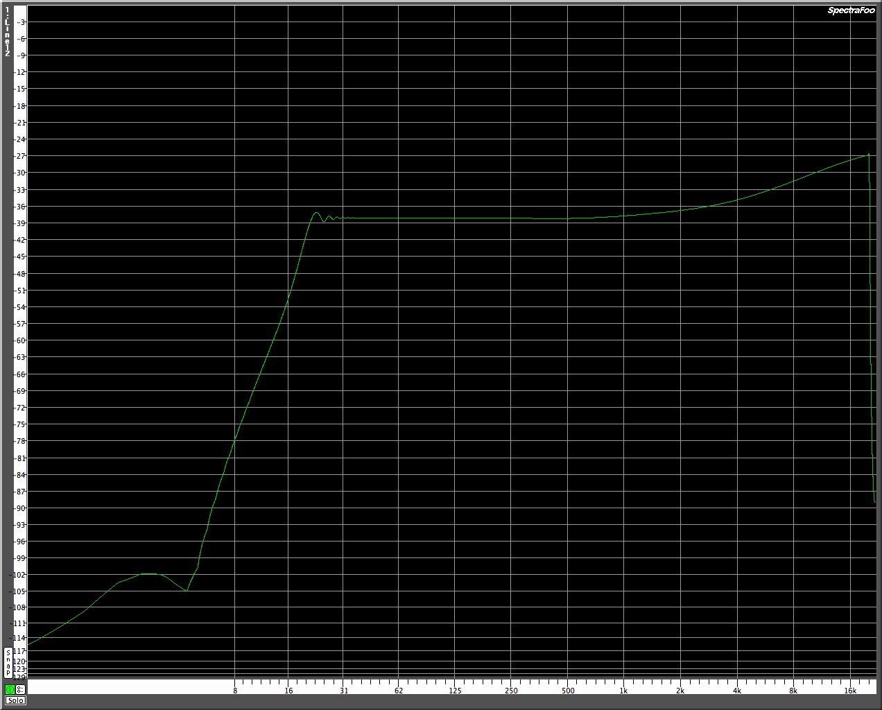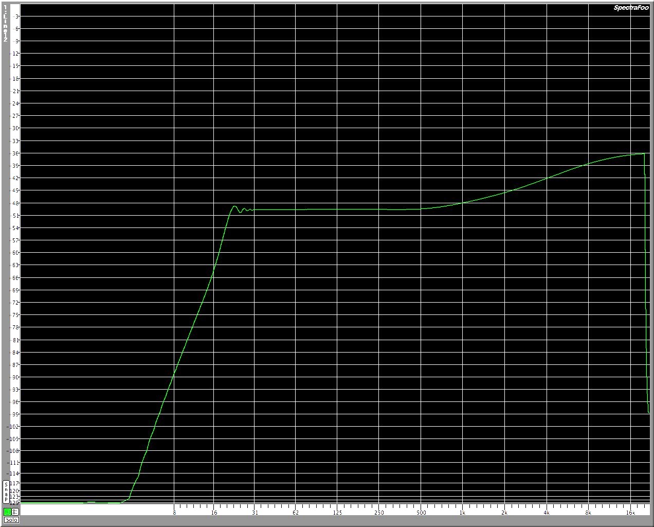 Il preamplificatore da solo introduce una differenza di fase a 40 Hz con una correlazione di circa +0,5. Scendendo sotto i 40 Hz, senza eq, si arriva a una correlazione di -0,2 a 20 Hz. Sopra i 3 kHz comincia a esserci un lievissimo scostamento di fase che tende ad amplificarsi salendo verso i 20 kHz, indipendentemente dall'eq, segno dell'intervento probabile del trasformatore.