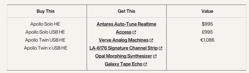 Ottieni $995 di plug-in UAD con alcune interfacce Apollo