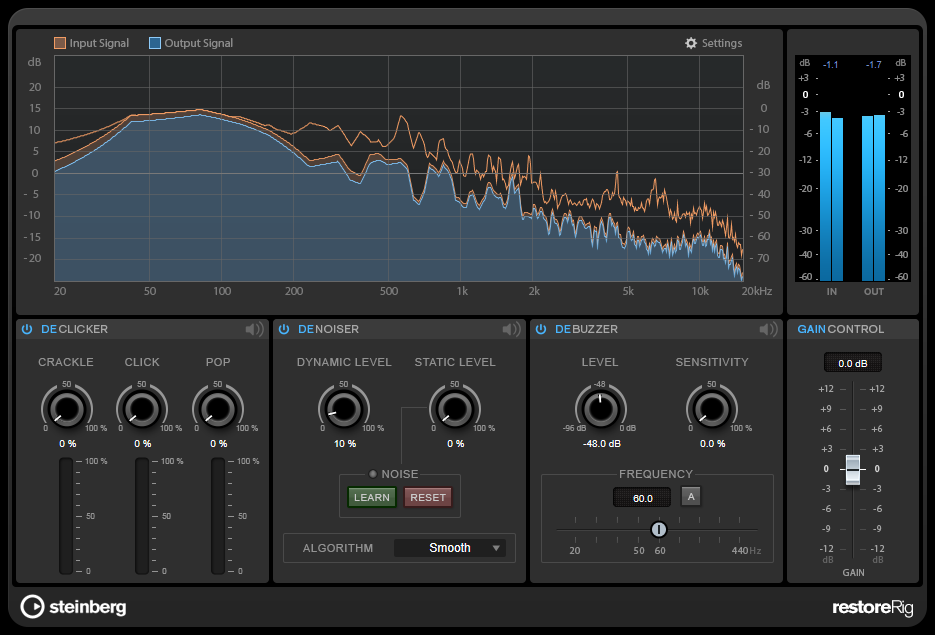 - nuovi moduli di processing tra cui la suite di plug-in RestoreRig per la post produzione audio che include DeClicker, DeCrackler, DePopper, DeNoiser e DeBuzzer