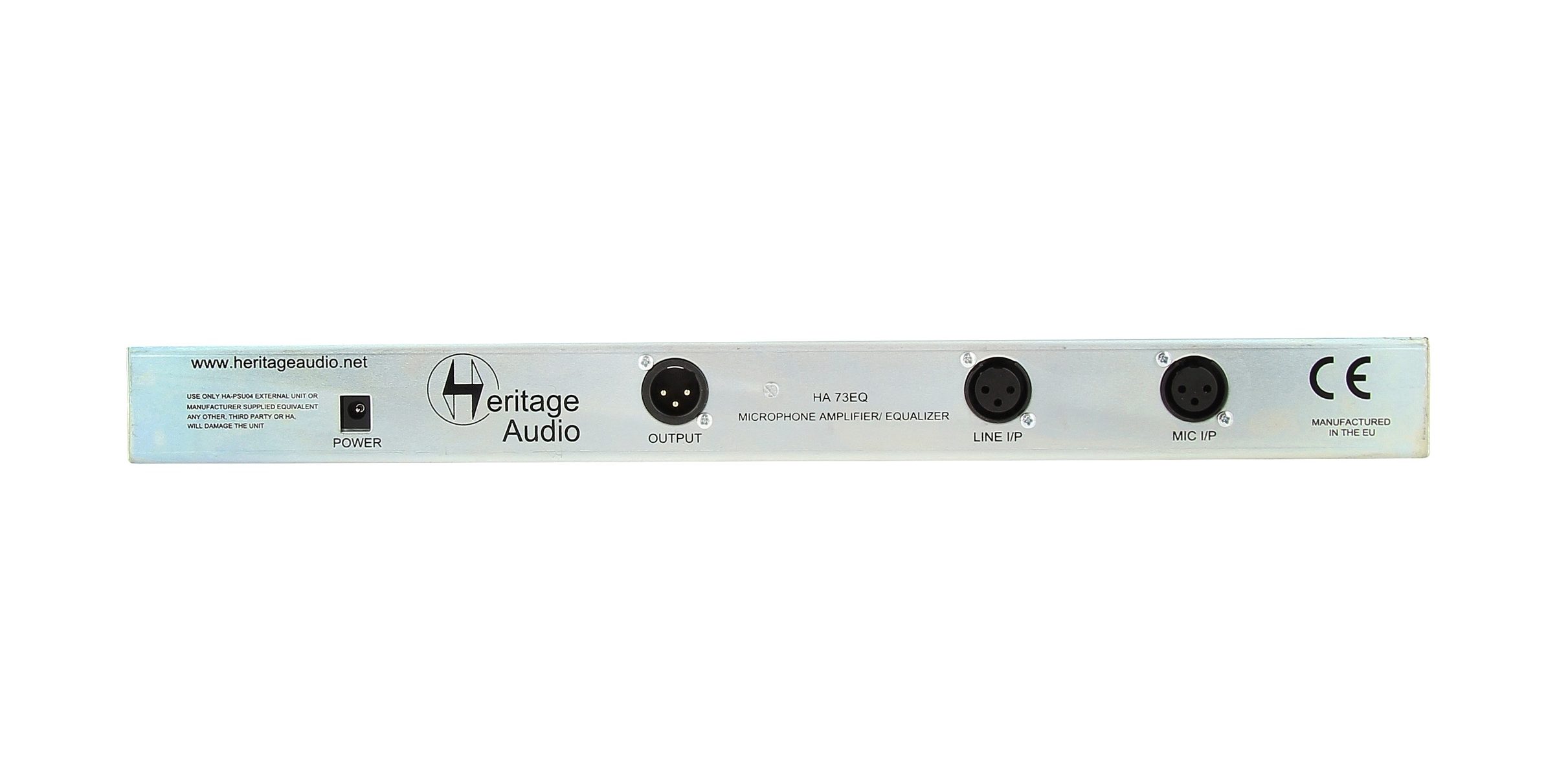 Per poter ottenere dei prezzi accessibili, Heritage si è basata sui progetti HA DNA73 e ‘73JR. La realizzazione prevede molti componenti SMD ma non rinuncia ai trasformatori Carnhill per ingressi e uscite e a tre induttori tipo Vinkor con condensatori WIMA con tolleranza al 5% per l’equalizzazione. L’elemento del gain, il transistor Mosfet 2n3055, è qui presente in formato SMD. L’alimentazione è fornita da un alimentatore esterno switching, da 100 a 220 Volt in automatico, che fornisce un’uscita a 48 Volt per 520 mA e 25 Watt al massimo.