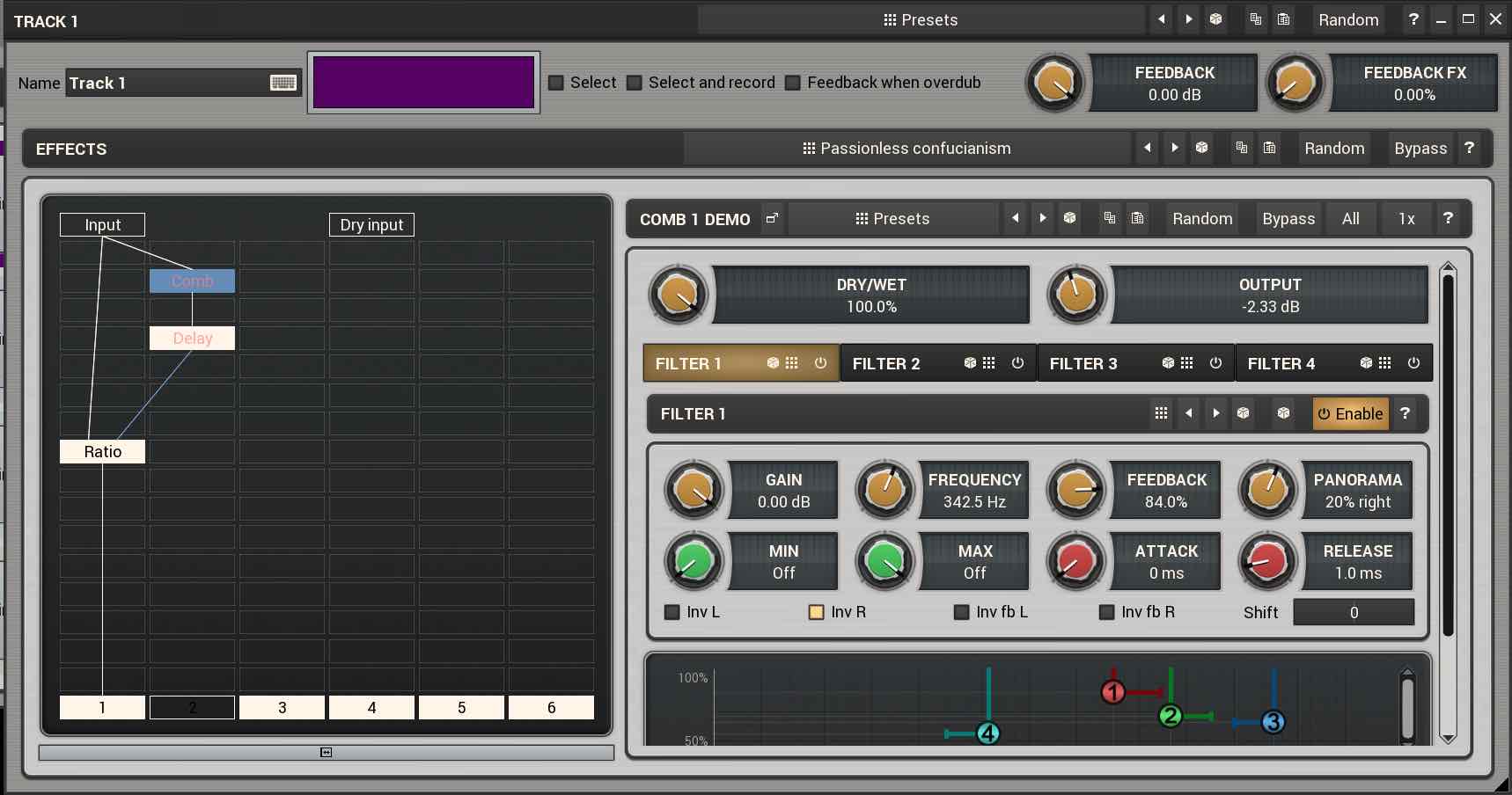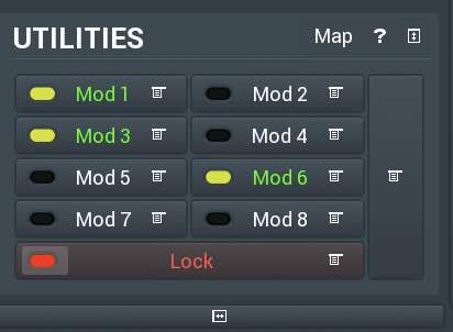 Un mezzo molto potente di programmazione sono i Modulators o Modulatori e i controlli Muliparametrici o Multiparameters. Si possono configurare otto Modulatori che controllano ciascuno uno o più parametri qualsiasi del software o dei plug-in attivi sulle tracce. Questi Modulatori, presenti nella sezione Utility, sono attivabili e disattivabili dall’utente; ciascun Modulatore possiede una finestra di editing che permette di deciderne il funzionamento.