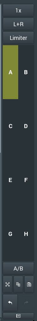 Infine, sull’estrema destra, troviamo in alto la sezione dedicata all’Upsampling, alla porzione di audio da far elaborare ai plug-in (Left, Right, Left+Right, Mid, Side, Mid+Side e altre configurazioni) e il pulsante dedicato all’attivazione del Limiter. Subito sotto chiudiamo con la sezione dedicata alla memorizzazione dei Preset A-H, con un pulsante di comparazione tra due preset (A/B) e possibilità di navigare tra i preset A-D con un pad X/Y che si apre premendo i pulsante Morph.
