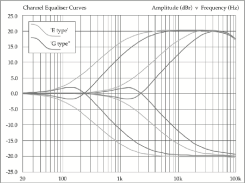 Caratteristica propria dell’equalizzatore E, in qualsiasi versione, è la larghezza di banda che rimane costante indipendentemente dalla frequenza e dal gain, a differenza dell’eq delle console serie G, dove aumentando il gain si riduce progressivamente la larghezza di banda, incrementando la selettività, e viceversa. La scheda fa ampio uso di operazionali TL032 e NE5534, con alimentazione a +/- 15 Volt, fornita dall’alimentatore switching del Mynx o dell’X-Rack.