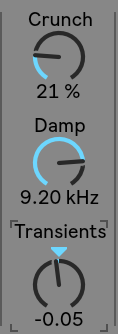 Troviamo due tipi di distorsione, Drive e Crunch, un controllo per il livello di ingresso, Trim, e uno per il livello di uscita (sensatamente si trovano, rispettivamente, a sinistra e a destra, come il canale in Live permette di alloggiare i device in linea orizzontale), un compressore, un Transient Shaper e una sezione Boom, che enfatizzerà le armoniche basse.
