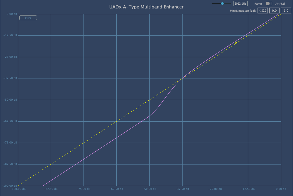 - Expand: questo algoritmo può essere utilizzato coi dei veri nastri analogici su cui sono registrate tracce con encoding A Type in modo da ottenere il suono giusto. Vi assicuro che ascoltare una registrazione analogica che ha subito un encoding di questo tipo senza decoding sarebbe tutt'altro che piacevole alle orecchie. Per ottenere un decoding il più vicino possibile a quello originale basta settare gli knob Amount e Mix sui segni fatti a matita, oppure caricare il preset A-Type EXPAND Stock HW Decode.